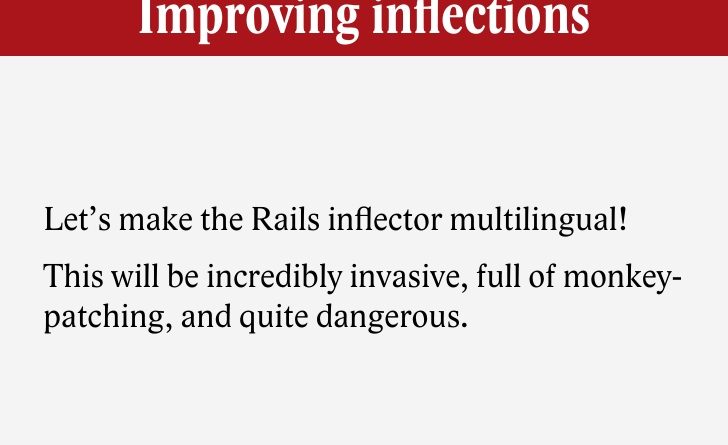 Ruby ob Rails имеет специальный класс Inflector, который предназначен для автоматического изменения правописания слов в контексте их применения. Речь [...]